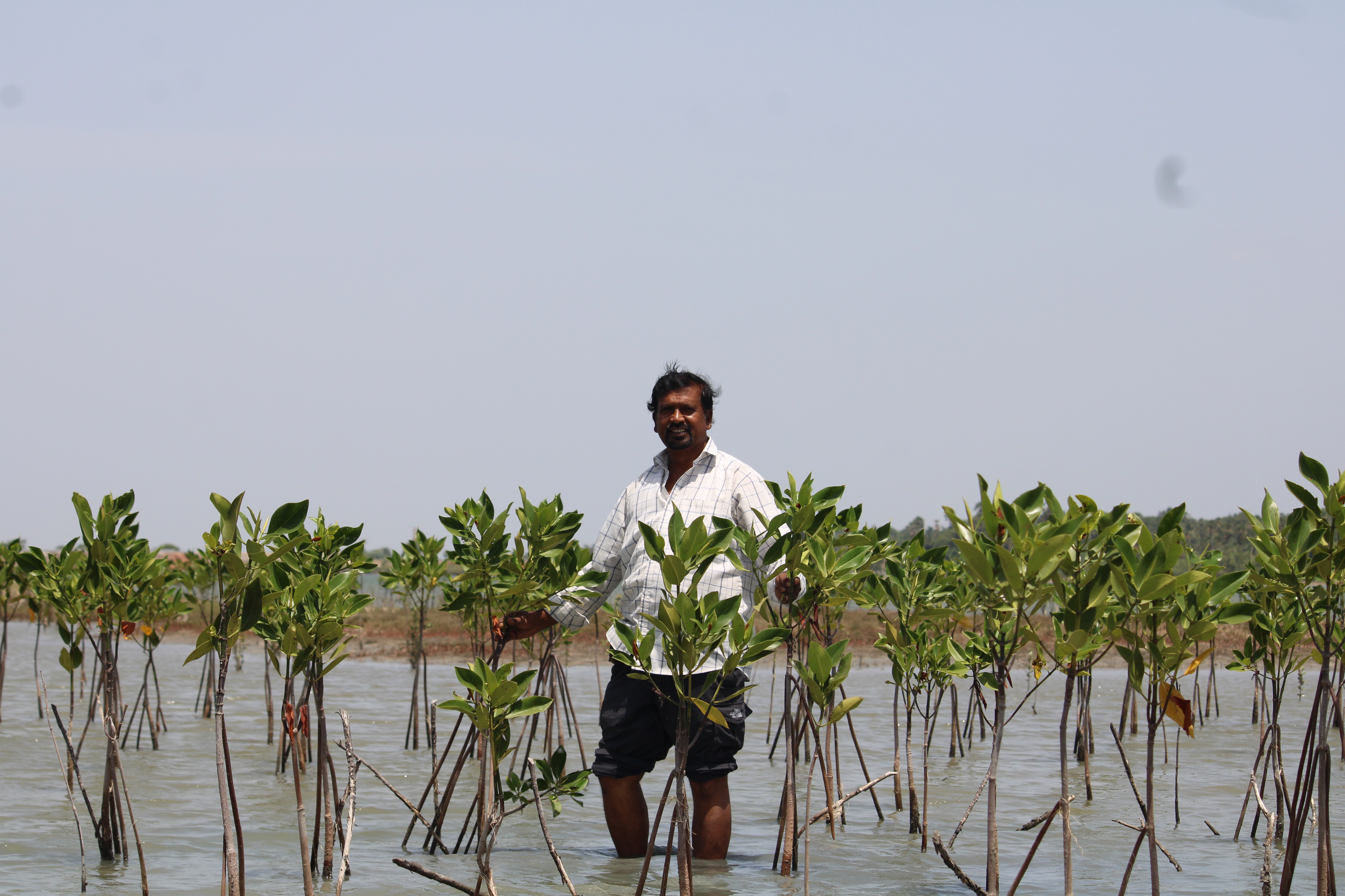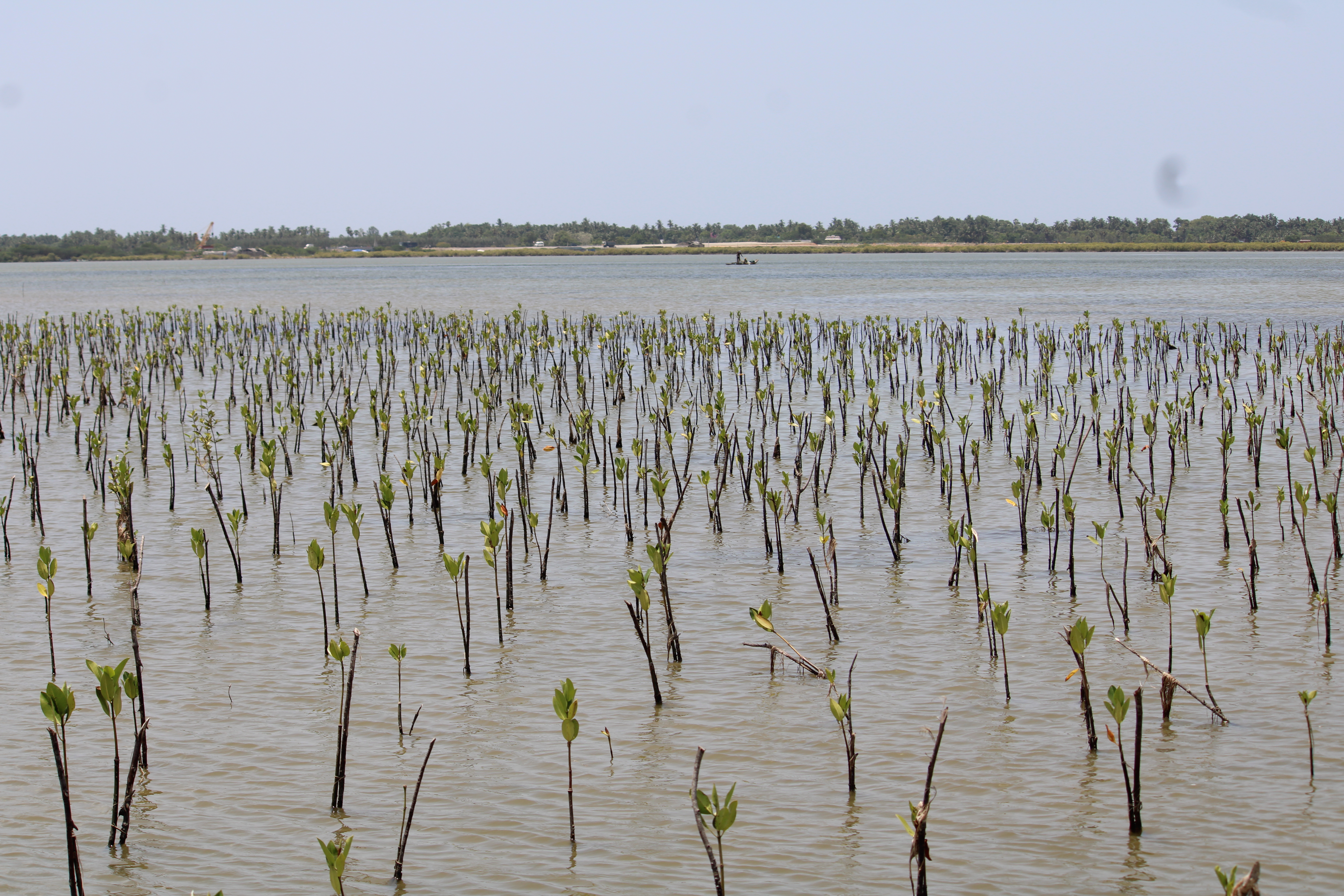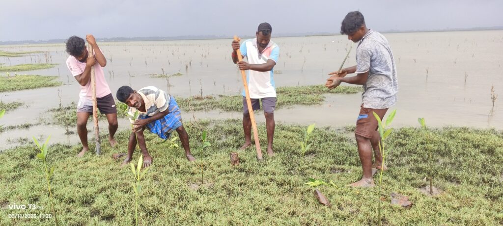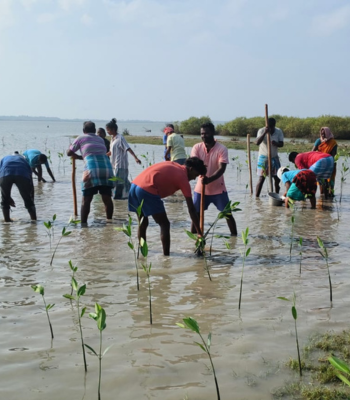 Planting mangroves to restore coastal ecosystems, promote sustainability, and educate communities on environmental resilience.